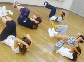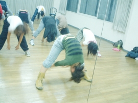 このクラスは小学生からを対象にしています。前半は基礎、後半は振付などにチャレンジ!この前には、Jrキッズクラス(小学生以下)があり、同じ曜日ということで兄弟で参加している家族もいます。