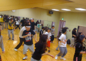 このクラスは小学生からを対象にしています。前半は基礎、後半は振付などにチャレンジ!この前には、Jrキッズクラス(小学生以下)があり、同じ曜日ということで兄弟で参加している家族もいます。